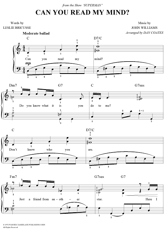 Digital Sheet Music for Can You Read My Mind? (Love Theme from "Superman") by Leslie Bricusse, Dan Coates, John Williams scored for Easy Piano; id:288840