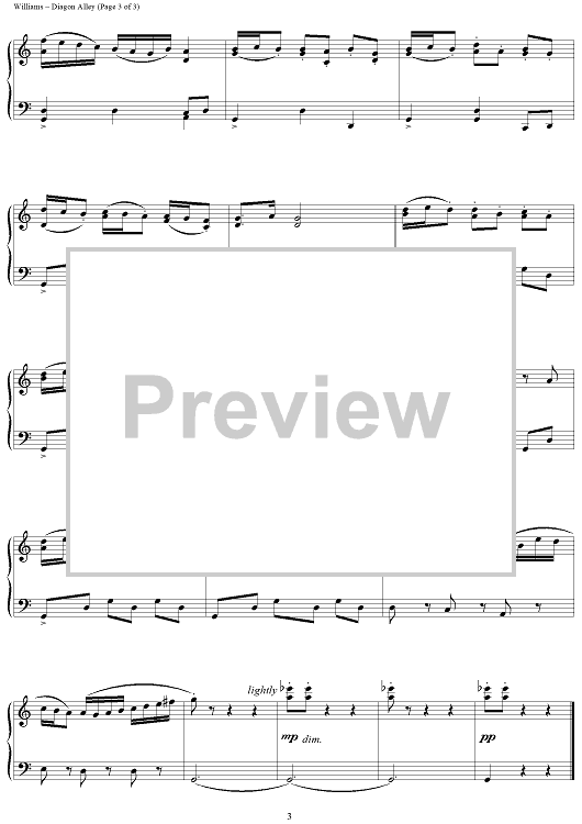 Digital Sheet Music for Diagon Alley by John Williams scored for Piano Solo; id:283782