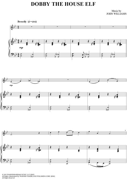 Digital Sheet Music for Dobby the House Elf by John Williams scored for Horn/Piano; id:317359