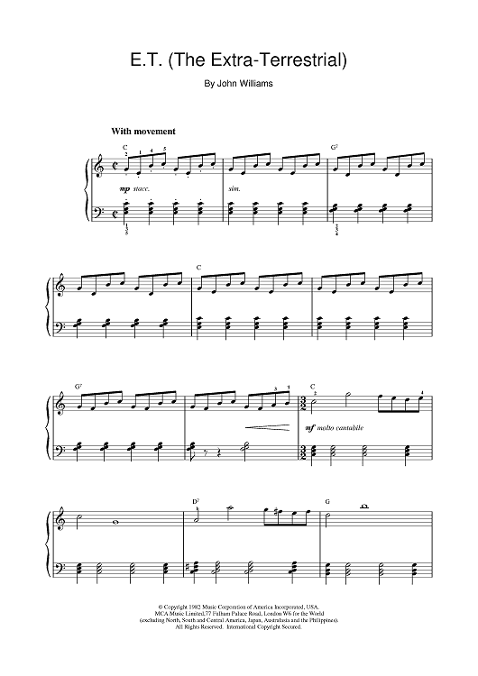 Digital Sheet Music for E.T. The Extra-Terrestrial by John Williams scored for Piano; id:380949