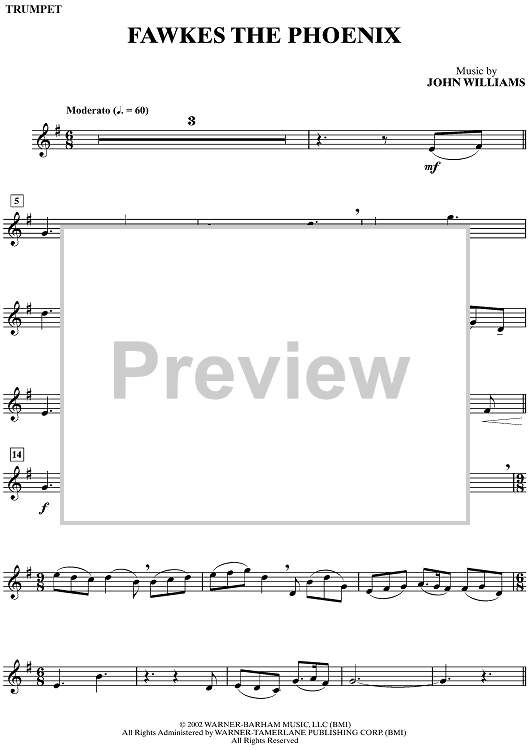 Digital Sheet Music for Fawkes the Phoenix by John Williams scored for Trumpet/Piano; id:498119