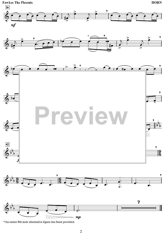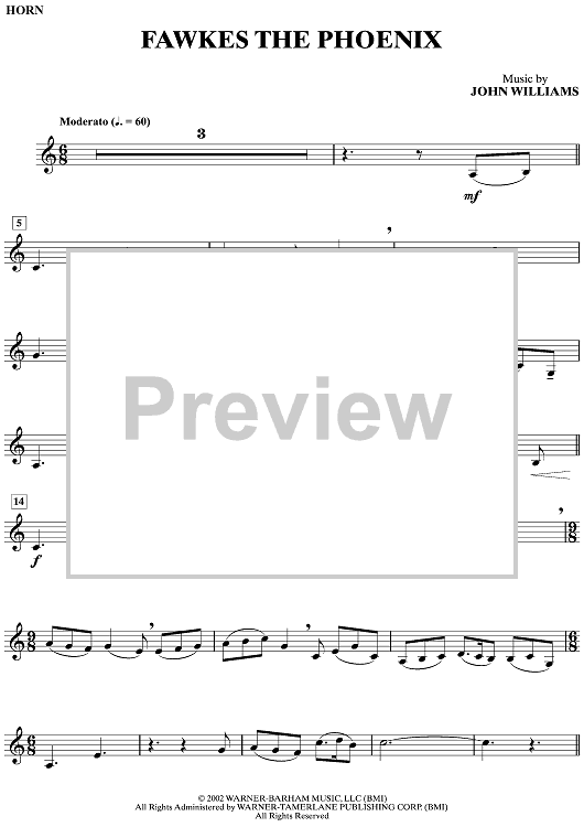 Digital Sheet Music for Fawkes the Phoenix by John Williams scored for Horn/Piano; id:498133