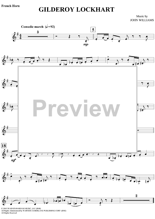 Digital Sheet Music for Gilderoy Lockhart by John Williams scored for Horn/Piano; id:317360