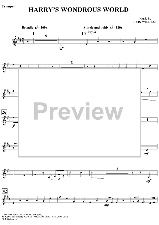 Digital Sheet Music for Harry's Wondrous World by John Williams scored for Trumpet/Piano; id:317340
