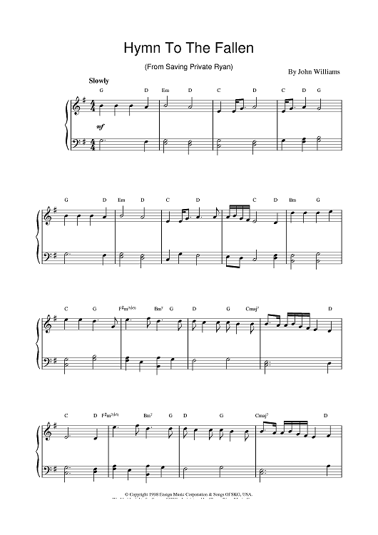 Digital Sheet Music for Hymn to the Fallen by John Williams scored for Piano; id:380810