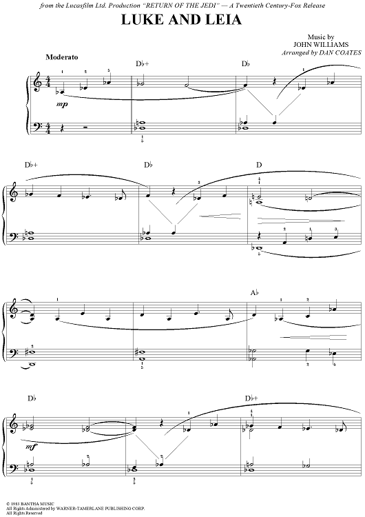 Digital Sheet Music for Luke and Leia by Dan Coates, John Williams scored for Easy Piano; id:263766