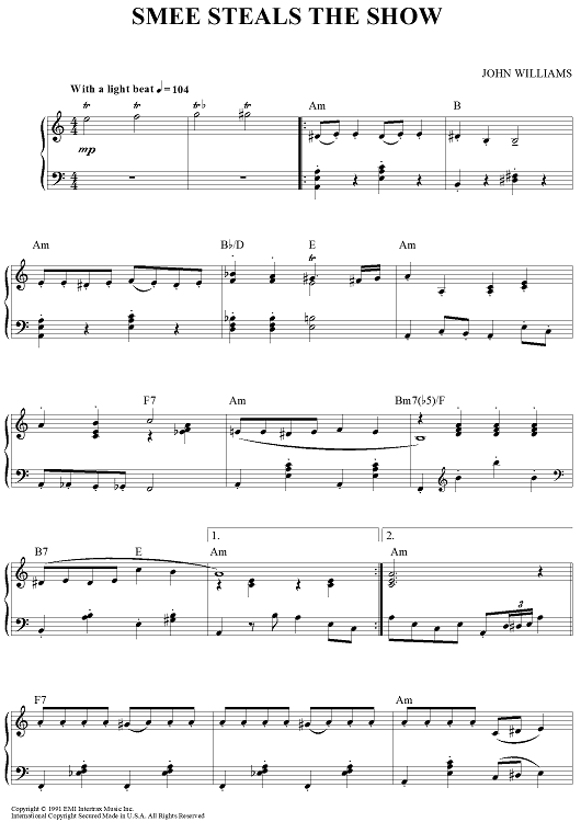 Digital Sheet Music for Smee Steals The Show by John Williams scored for Piano/Chords; id:439616