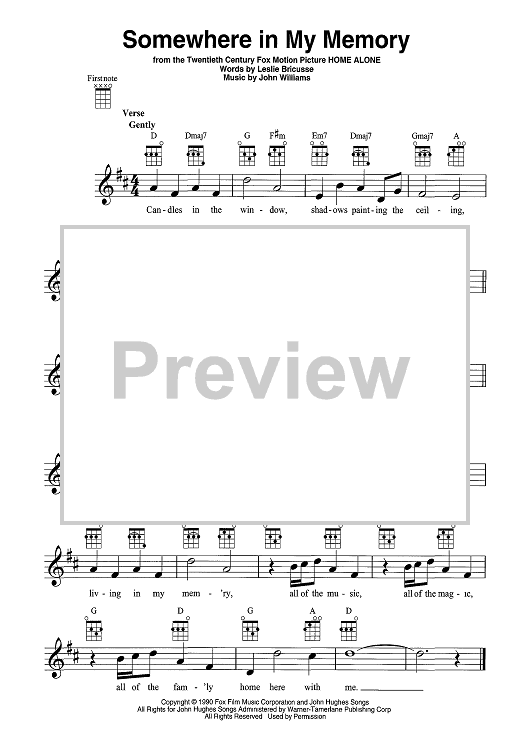 Digital Sheet Music for Somewhere In My Memory by Leslie Bricusse, John Williams scored for Ukulele/Vocal; id:467757