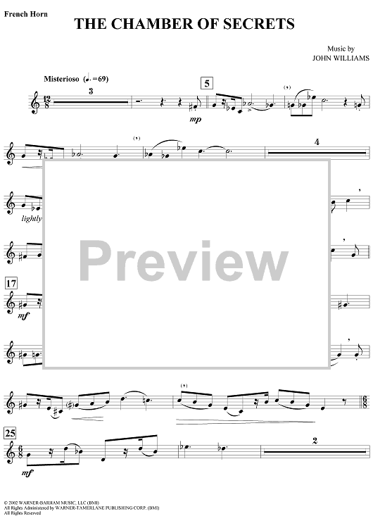 Digital Sheet Music for The Chamber of Secrets by John Williams scored for Horn/Piano; id:317365