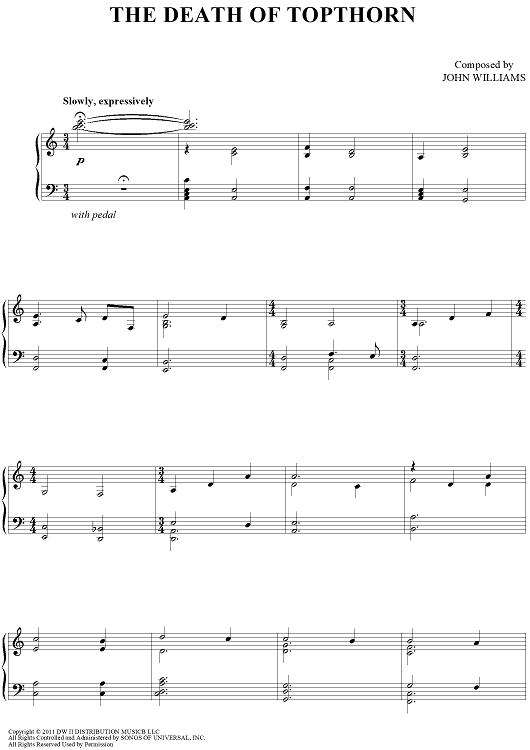 Digital Sheet Music for The Death of Topthorn by John Williams scored for Piano Solo; id:451961