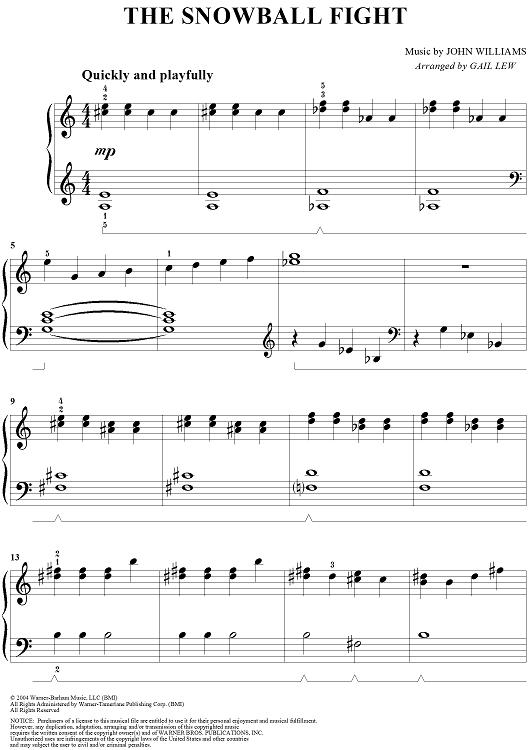 Digital Sheet Music for The Snowball Fight by John Williams, Gail Lew scored for Easy Piano; id:313761