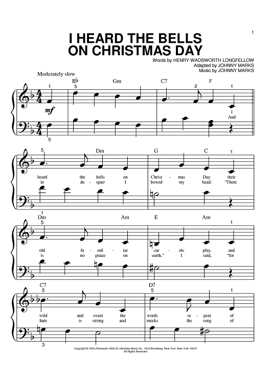 "I Heard The Bells On Christmas Day" Sheet Music by Johnny Marks