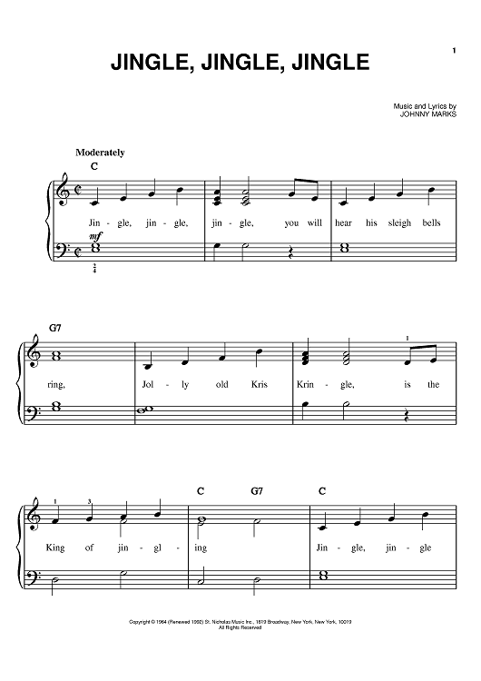 Digital Sheet Music for Jingle, Jingle, Jingle by Johnny Marks scored for Easy Piano; id:372683