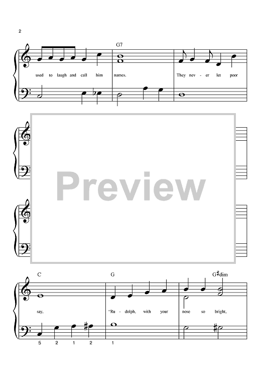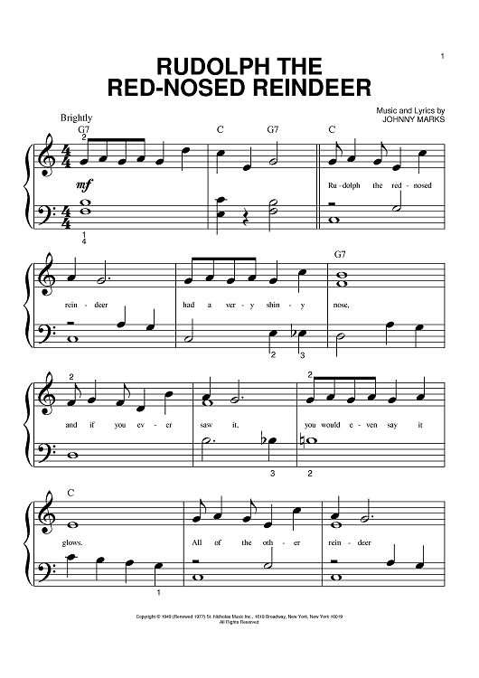 Digital Sheet Music for Rudolph The Red-Nosed Reindeer by John Denver, Johnny Marks scored for Big Note Piano; id:384878