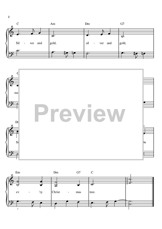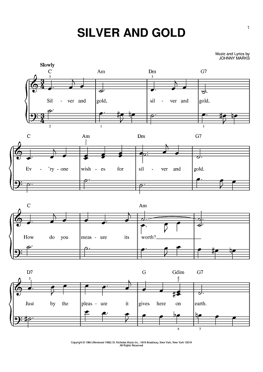 Digital Sheet Music for Silver And Gold by Johnny Marks, Burl Ives scored for Easy Piano; id:375293