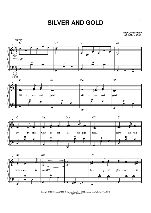"Silver And Gold" Sheet Music by Johnny Marks