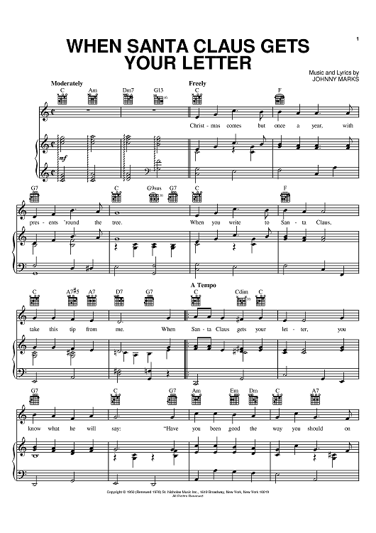 Digital Sheet Music for When Santa Claus Gets Your Letter by Johnny Marks scored for Piano/Vocal/Chords; id:375109