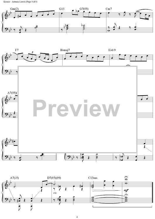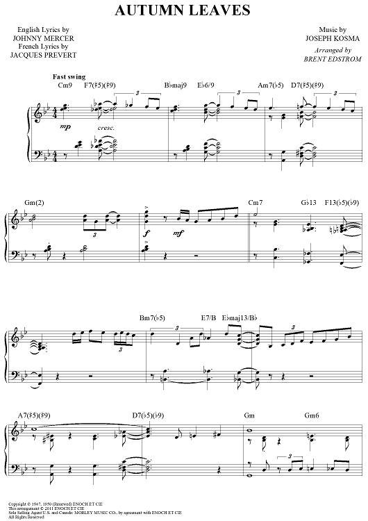 Digital Sheet Music for Autumn Leaves by Johnny Mercer, Jacques Prevert, Joseph Kosma, Brent Edstrom scored for Piano Solo; id:458552