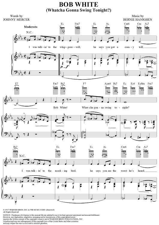 Digital Sheet Music for Bob White (Whatcha Gonna Swing Tonight?) by Johnny Mercer, Bernie Hanighen scored for Piano/Vocal/Chords; id:267341