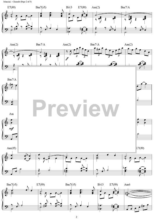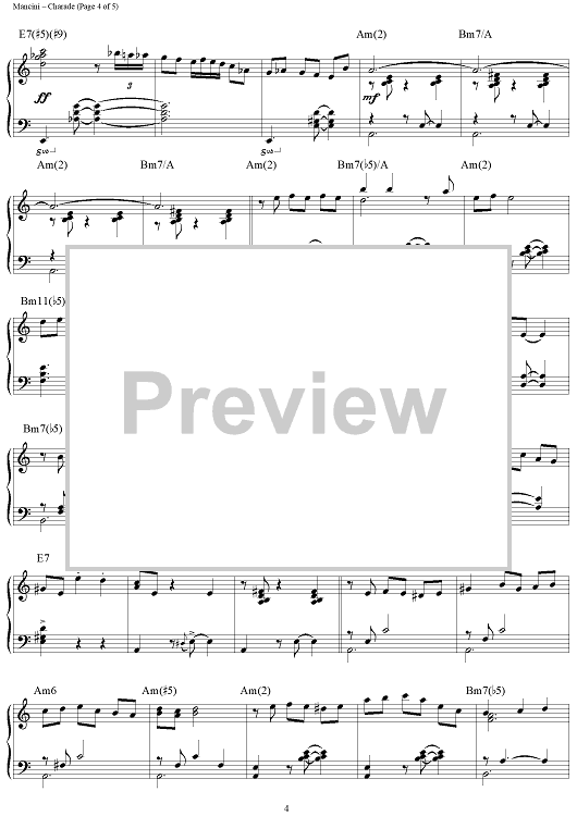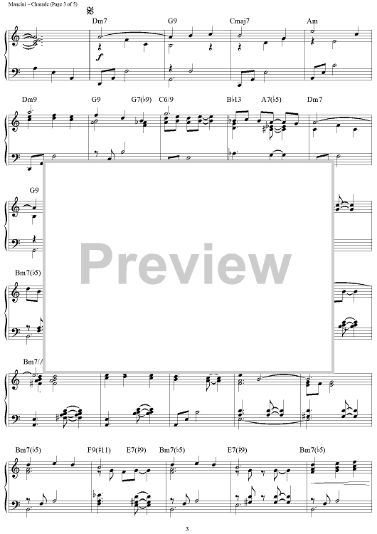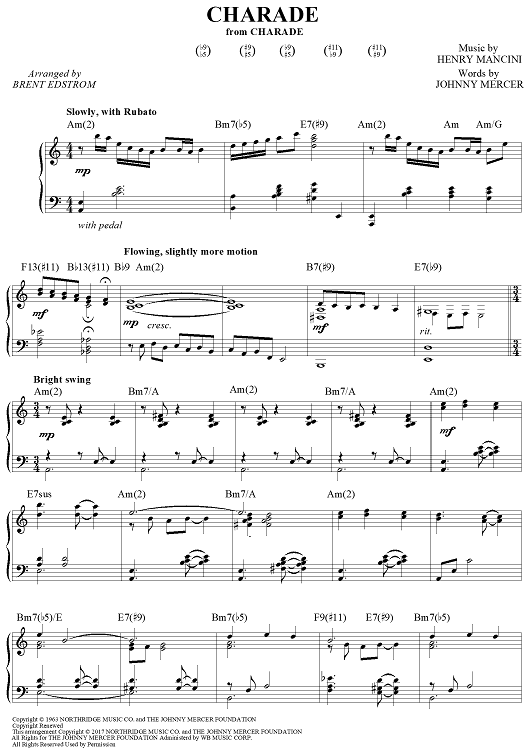 Digital Sheet Music for Charade by Henry Mancini, Johnny Mercer, Brent Edstrom scored for Piano Solo; id:465453