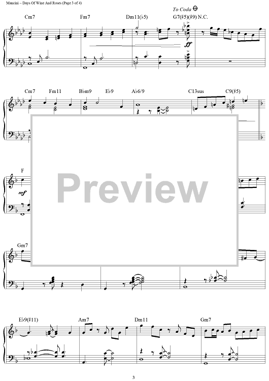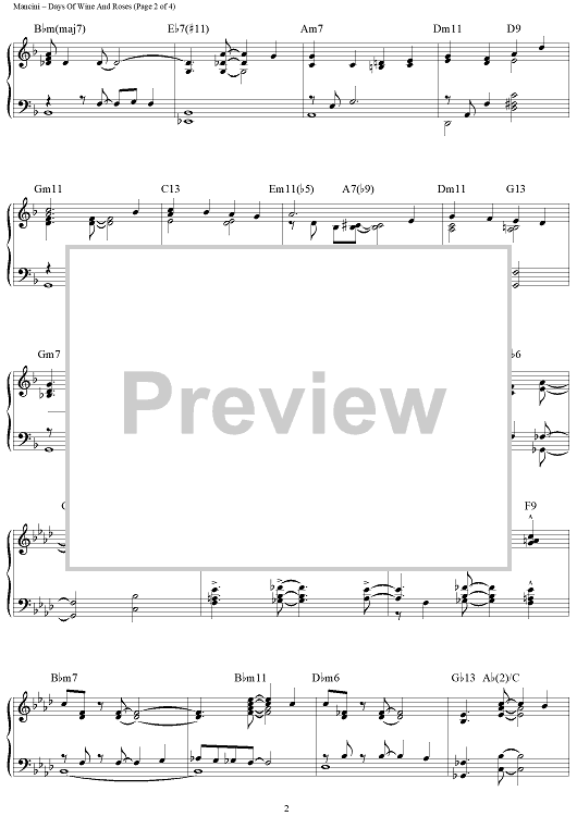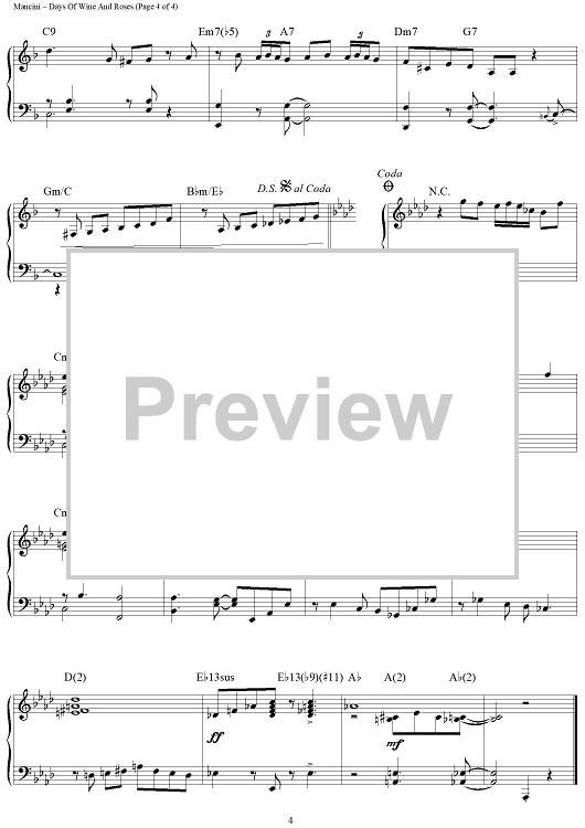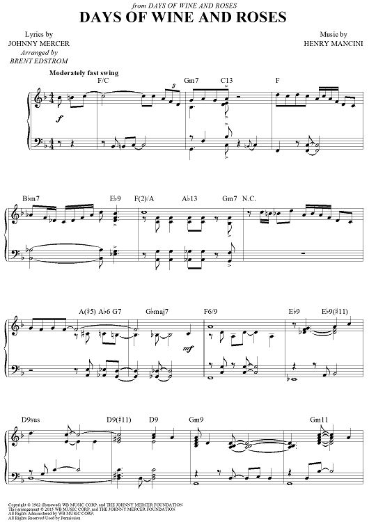 Digital Sheet Music for Days of Wine and Roses by Henry Mancini, Johnny Mercer, Brent Edstrom scored for Piano Solo; id:459939