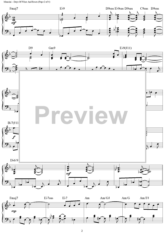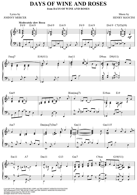 "Days Of Wine And Roses" Sheet Music by Henry Mancini