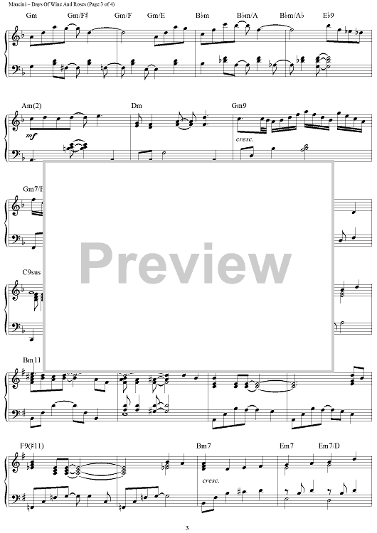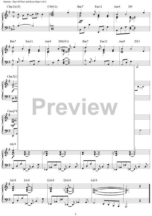 Digital Sheet Music for Days Of Wine And Roses by Henry Mancini, Johnny Mercer scored for Piano Solo; id:465601
