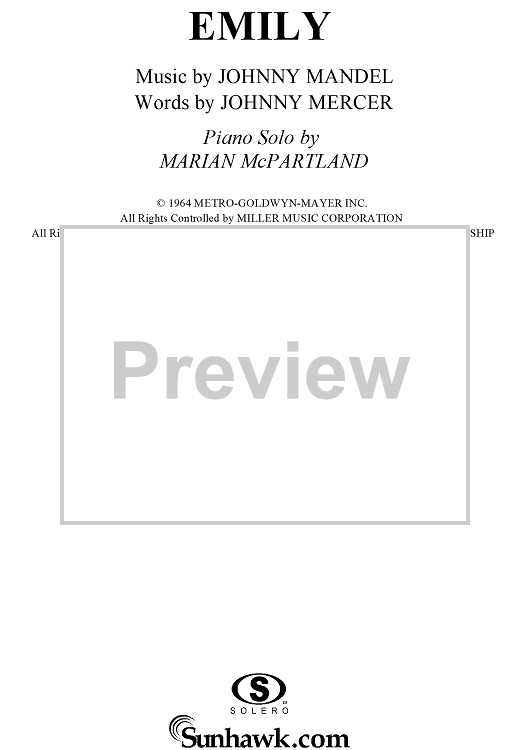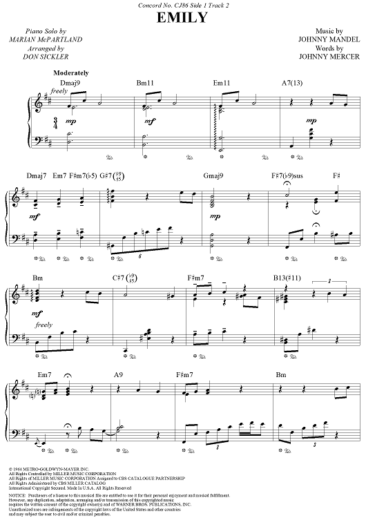 Digital Sheet Music for Emily by Johnny Mercer, Marian McPartland, Don Sickler, Johnny Mandel scored for Piano Solo; id:215565