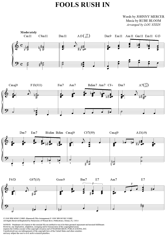 Digital Sheet Music for Fools Rush In by Johnny Mercer, Lou Stein, Rube Bloom scored for Piano Solo; id:274752