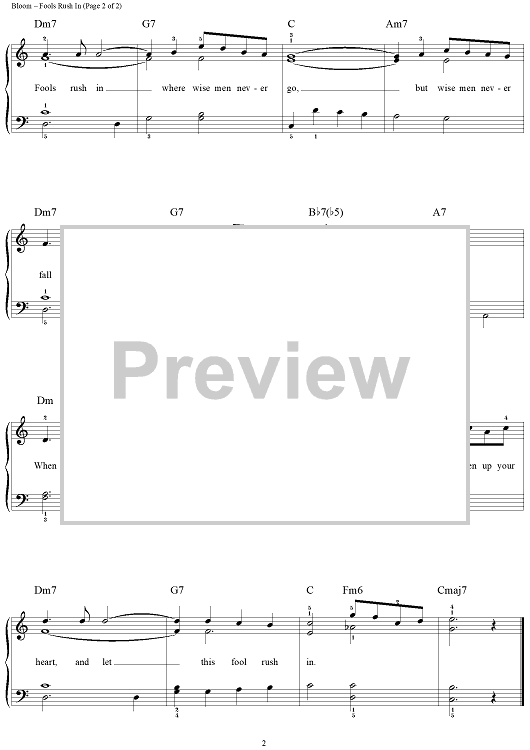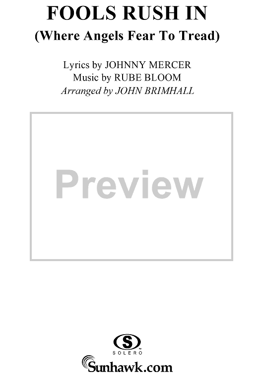 Digital Sheet Music for Fools Rush In (Where Angels Fear to Tread) by Johnny Mercer, John Brimhall, Rube Bloom scored for Easy Piano/Vocal; id:274521