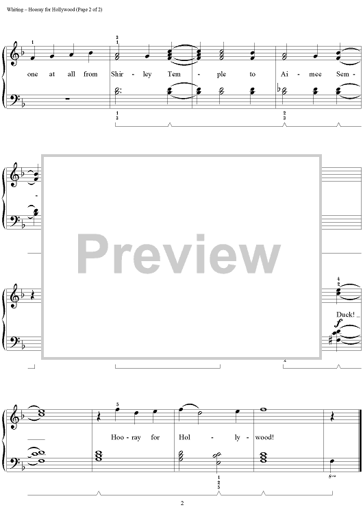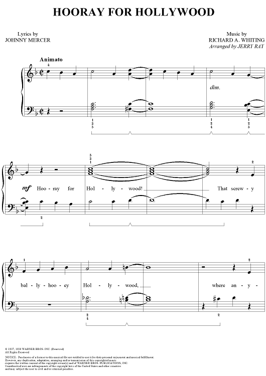 Digital Sheet Music for Hooray for Hollywood by Johnny Mercer, Jerry Ray, Richard A. Whiting scored for Easy Piano/Vocal; id:288531