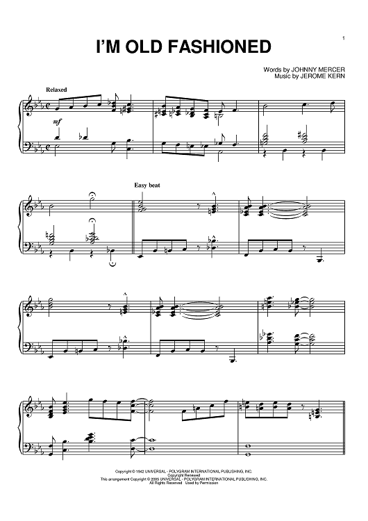 Digital Sheet Music for I'm Old Fashioned by Johnny Mercer, Jerome Kern scored for Piano; id:386281