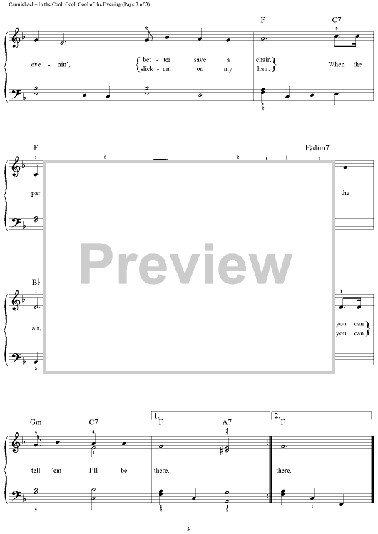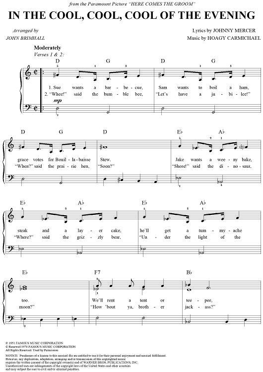 Digital Sheet Music for In the Cool, Cool, Cool of the Evening by Johnny Mercer, Hoagy Carmichael, John Brimhall scored for Easy Piano/Vocal; id:273020