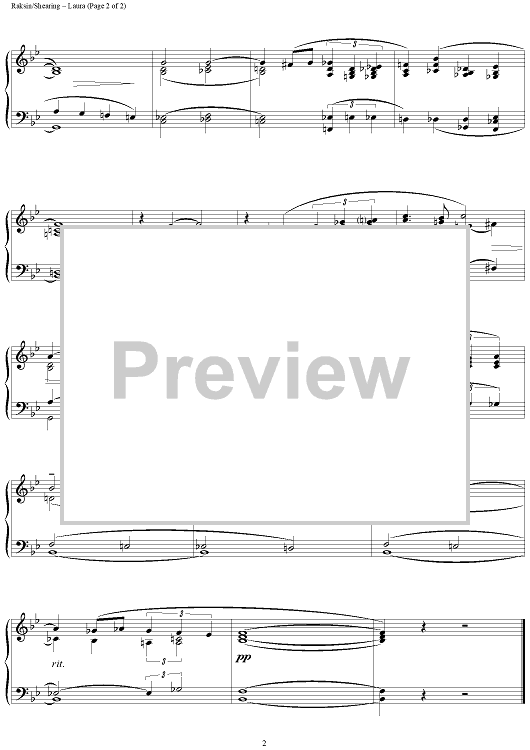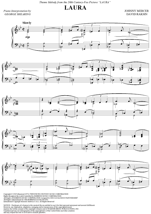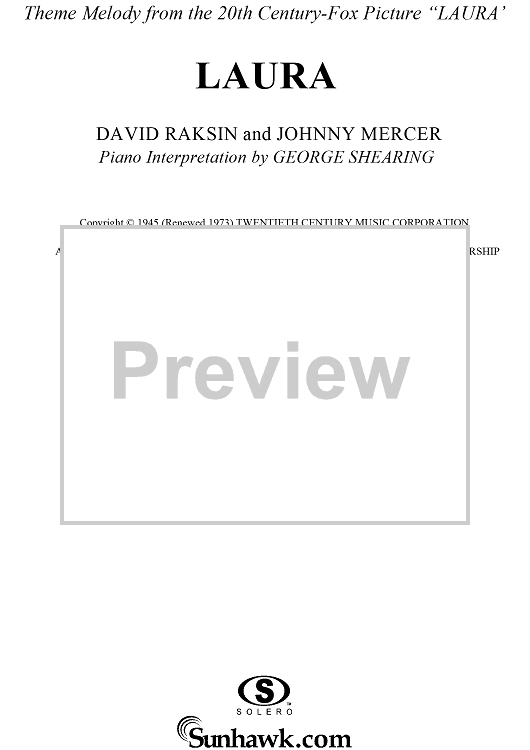 Digital Sheet Music for Laura by Johnny Mercer, George Shearing, David Raksin scored for Piano Solo; id:115795