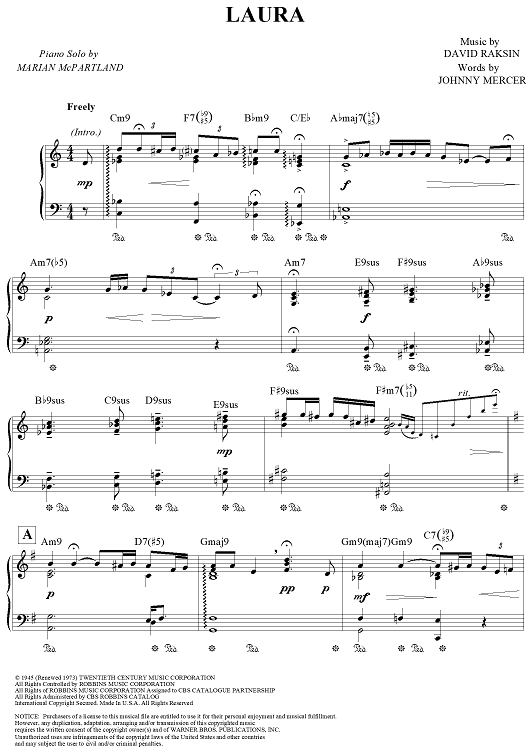 "Laura" Sheet Music by Marian McPartland