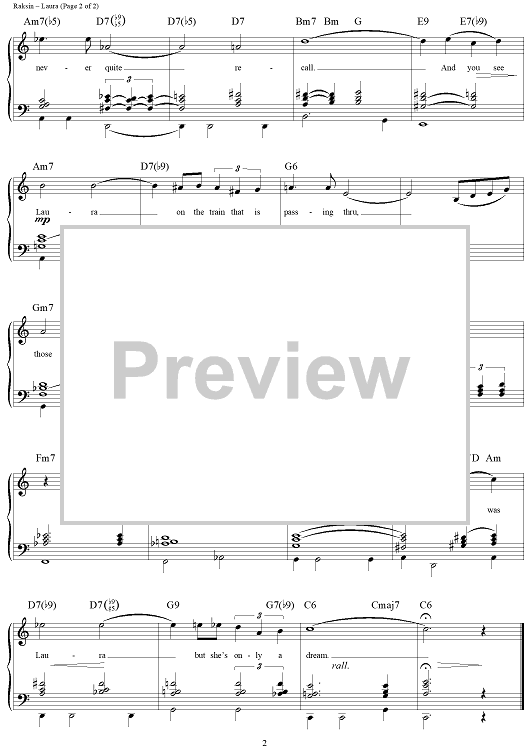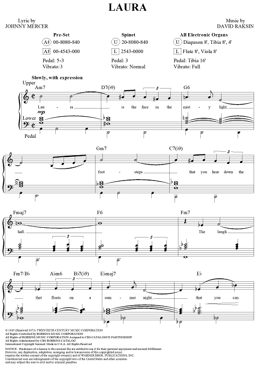 Digital Sheet Music for Laura by Johnny Mercer, David Raksin scored for Easy Organ/Vocal; id:255038