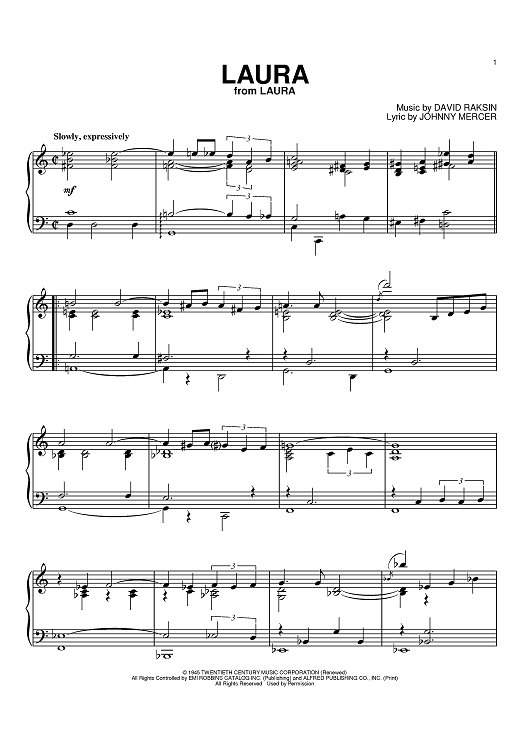 Digital Sheet Music for Laura by Johnny Mercer, David Raksin scored for Piano; id:397212