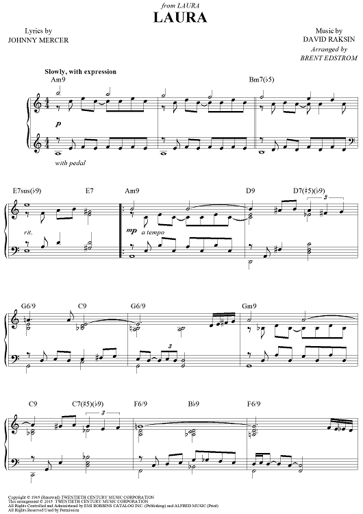 Digital Sheet Music for Laura by Johnny Mercer, David Raksin, Brent Edstrom scored for Piano Solo; id:458716