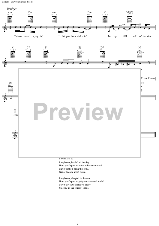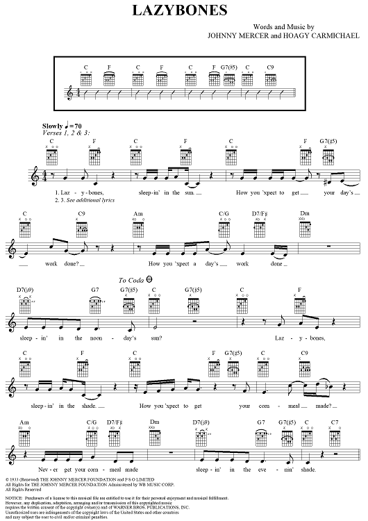 Digital Sheet Music for Lazybones by Johnny Mercer, Jerry Garcia, Hoagy Carmichael scored for Easy Guitar/Vocal; id:291573