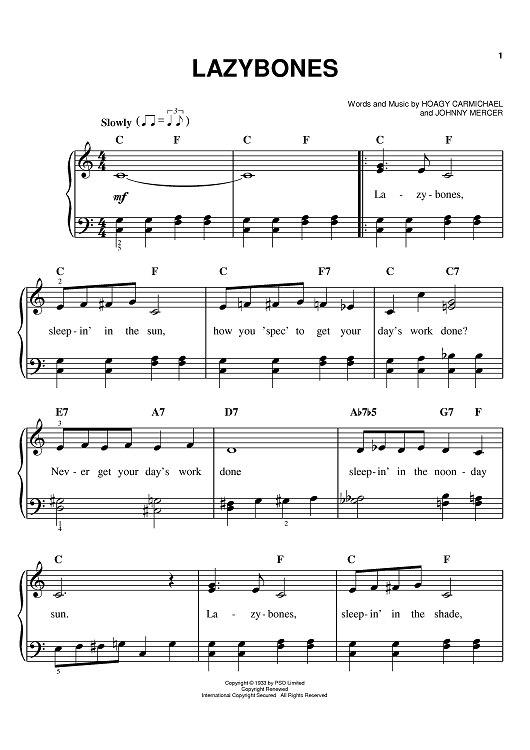 Digital Sheet Music for Lazybones by Johnny Mercer, Hoagy Carmichael scored for Easy Piano; id:369959