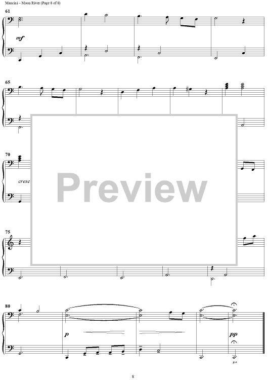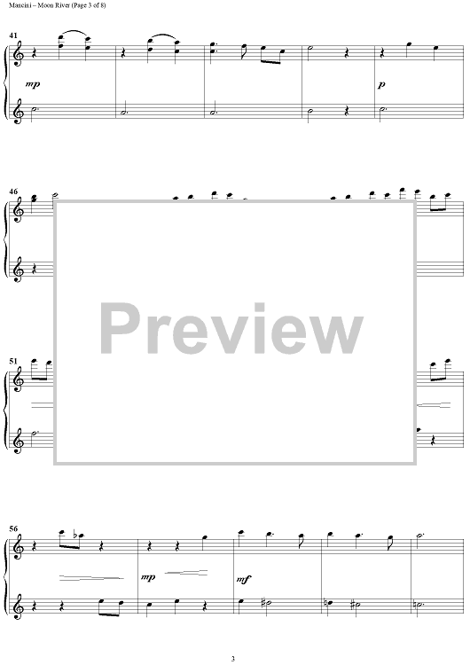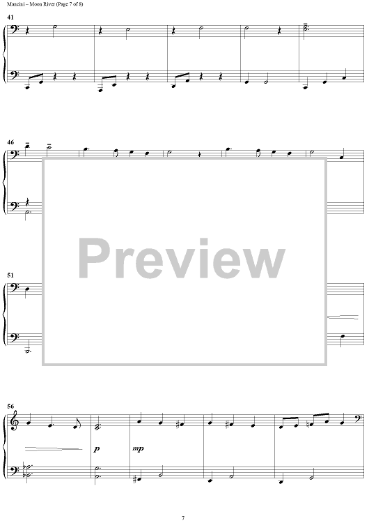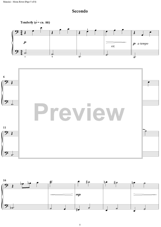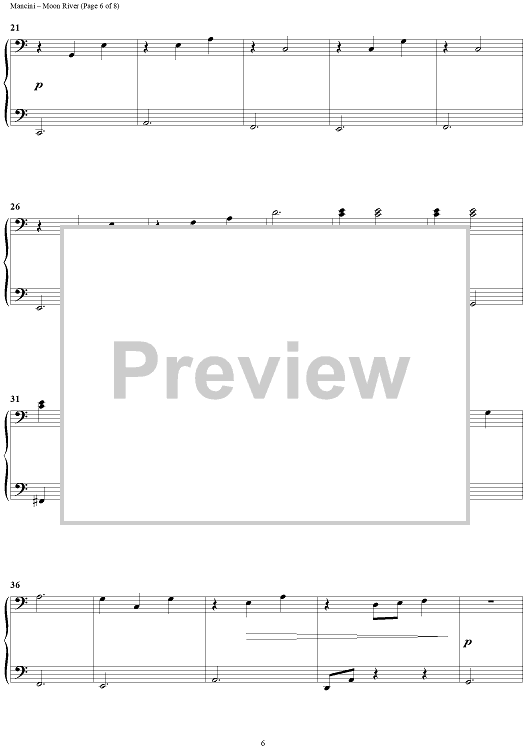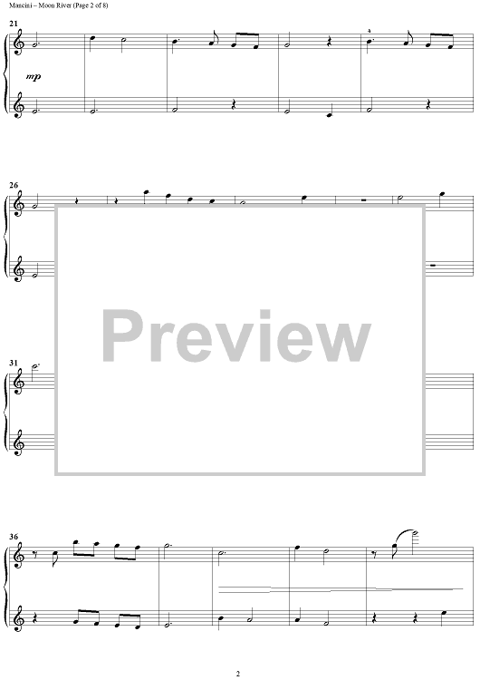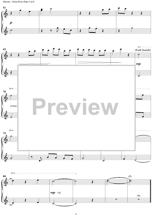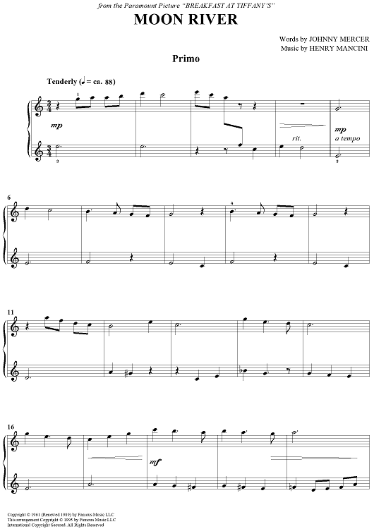 Digital Sheet Music for Moon River by Henry Mancini, Johnny Mercer, Andy Williams scored for 1 Piano, 4 Hands; id:402731