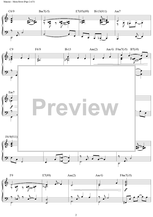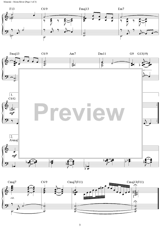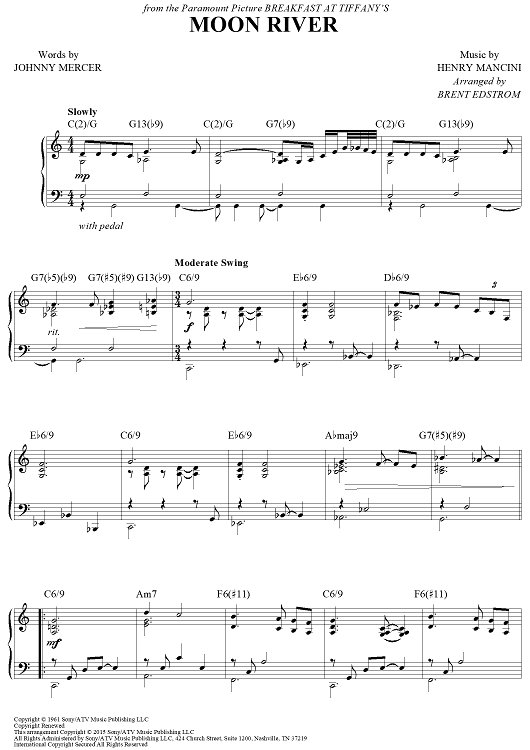 Digital Sheet Music for Moon River by Henry Mancini, Johnny Mercer, Brent Edstrom scored for Piano Solo; id:458544