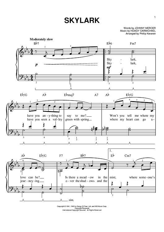 Digital Sheet Music for Skylark by Johnny Mercer, Hoagy Carmichael, Phillip Keveren scored for Easy Piano; id:392258
