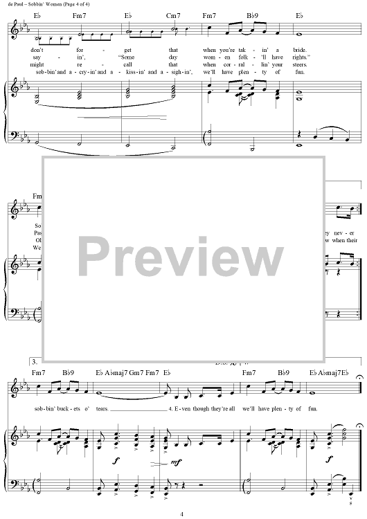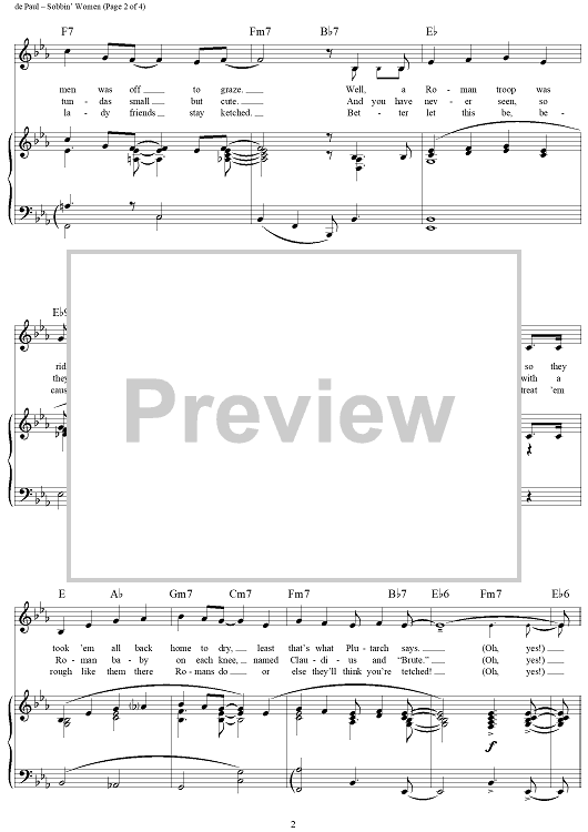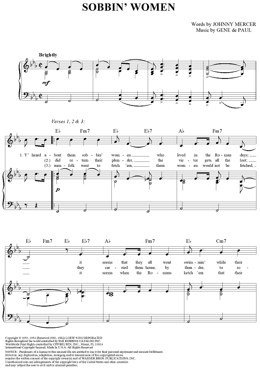 Digital Sheet Music for Sobbin' Women by Johnny Mercer, Gene De Paul scored for Piano/Vocal/Chords; id:271117