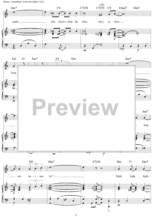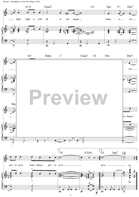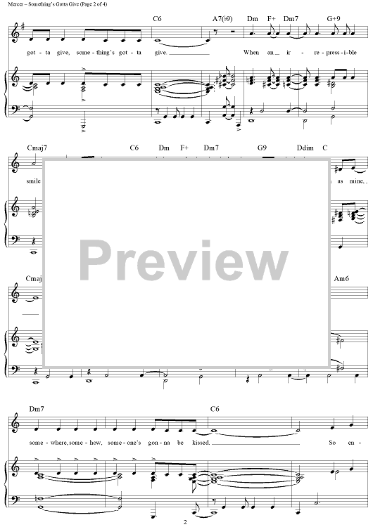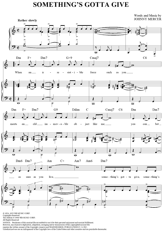 Digital Sheet Music for Something's Gotta Give by Frank Sinatra, Johnny Mercer, Fred Astaire, Sammy Davis scored for Piano/Vocal/Chords; id:95869