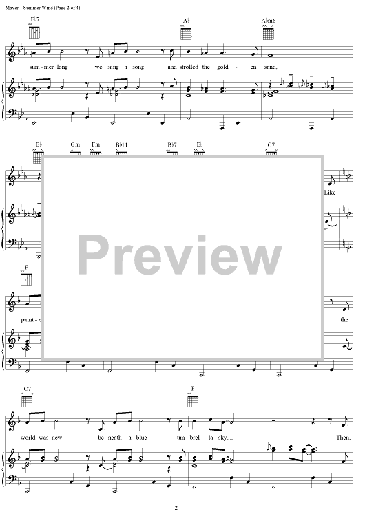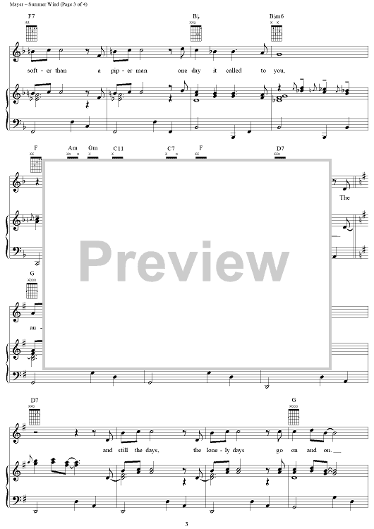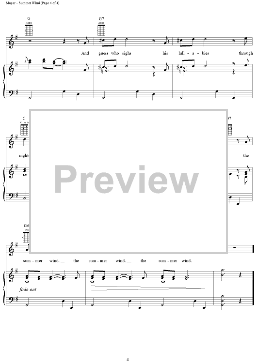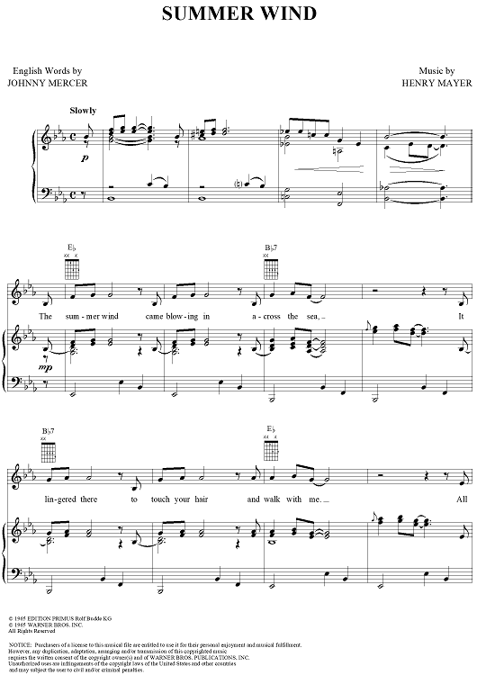 Digital Sheet Music for Summer Wind by Frank Sinatra, Johnny Mercer, Henry Mayer, Michael Buble scored for Piano/Vocal/Chords; id:111823