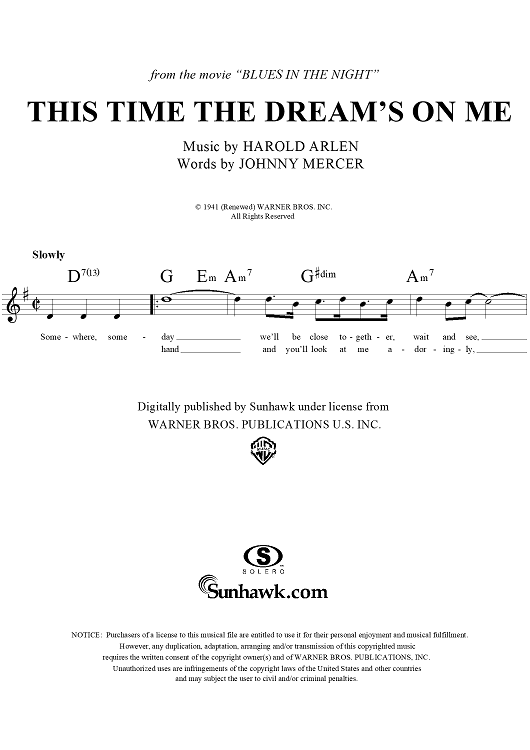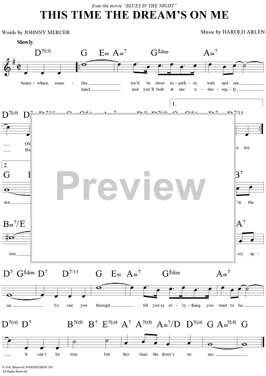 Digital Sheet Music for This Time the Dream's On Me by Harold Arlen, Johnny Mercer scored for Lead Sheet; id:276835