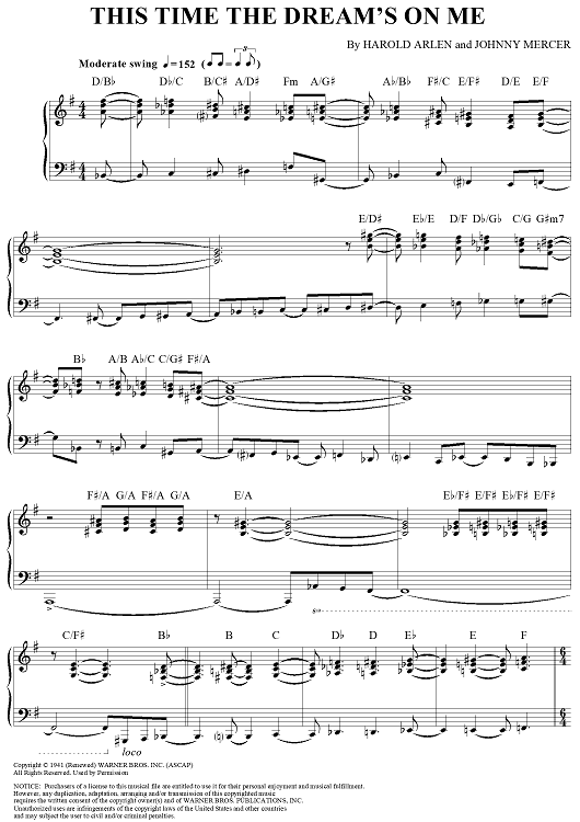 Digital Sheet Music for This Time the Dream's on Me by Harold Arlen, Johnny Mercer, Marian McPartland scored for Piano Solo; id:316499