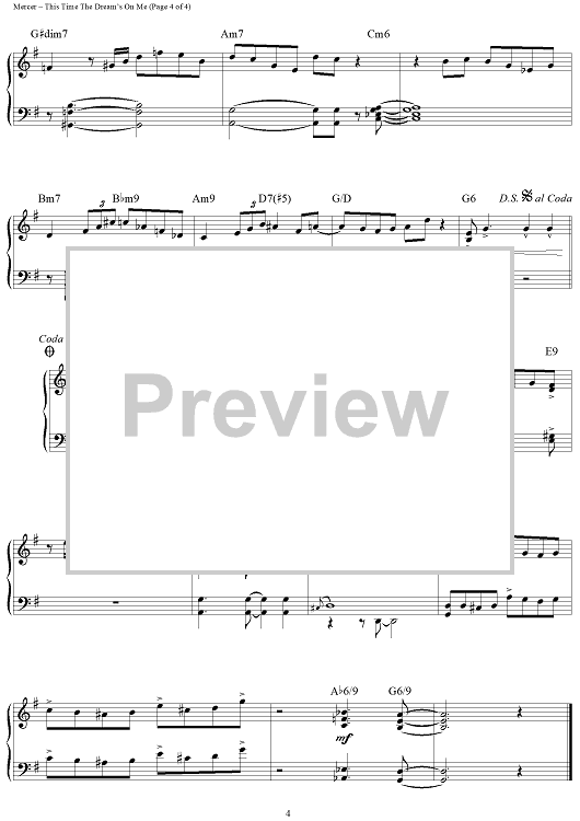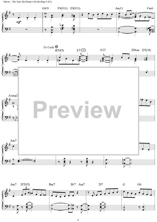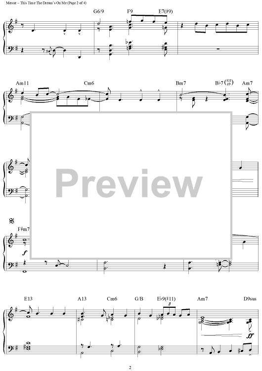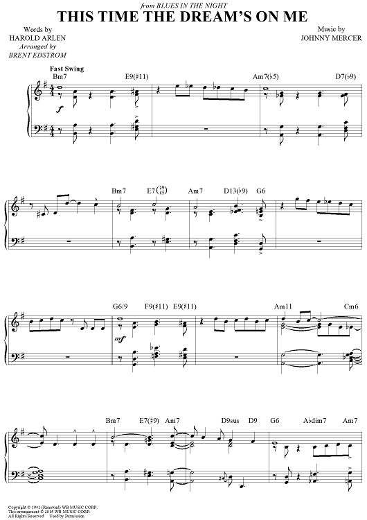 Digital Sheet Music for This Time The Dream's On Me by Harold Arlen, Johnny Mercer, Brent Edstrom scored for Piano Solo; id:460340