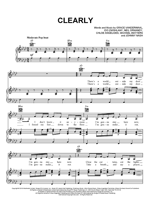 Digital Sheet Music for Clearly by Johnny Nash, Ido Zmishlany, Neil Ormandy, Grace VanderWaal, Chloe Angelides, Michael Watters scored for Piano/Vocal/Chords; id:466324